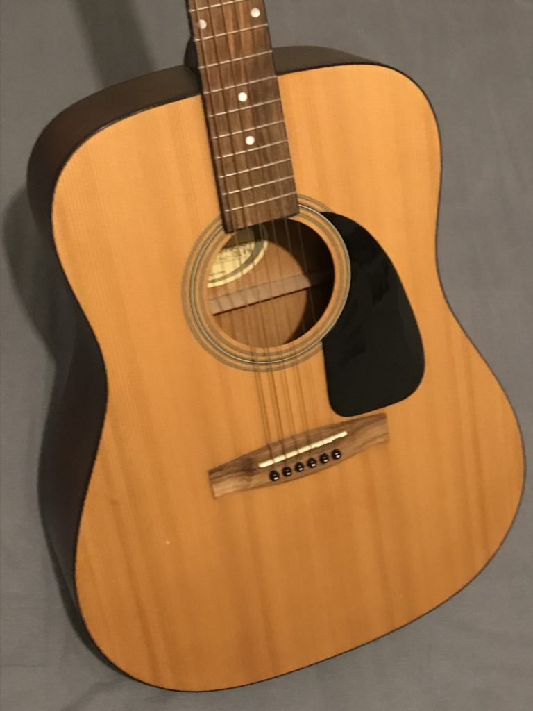 V neděli mě nějak napadlo, že bych si třeba mohl koupit kytaru. Sice jich doma máme už fakt dost, ale tady žádnou nemám. Říkal jsem si, že by to mohla být taky docela dobrá památka na můj pobyt tady. Kouknul jsem se na facebook a na nějaký holandský aukro a zaujala mě tam jedna kytara, která se tam zrovna objevila. Hned jsem na inzerát napsal a za půl hodiny jsem si pro ní jel. Je to nějaká shit kytara, aby z tech co máme doma nevyčnívala. Na to moje brnkání u ohýnku to je ideál. Stála mě 50€, takže něco málo přes litr. Myslim, že jsem to fakt vychytal 😀 Ten týpek moc nevěděl co to doma má. Kytara hraje obstojně, tak snad bude sloužit dlouho!